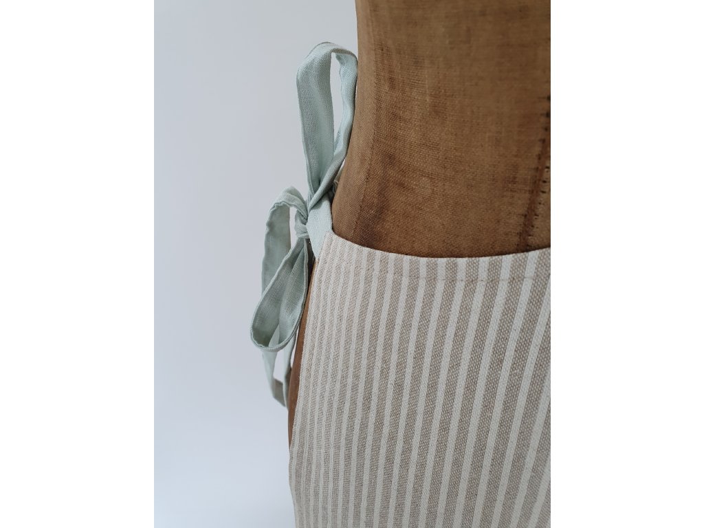 Tyto jedinečné zástěry, použitelné jak v kuchyni, tak třeba v květinářství, vznikly z touhy nosit a používat přírodní materiál a zároveň, díky designu, zůstat při vaření dámou, která se může v této zástěrce cítit jako v romantických šatech.